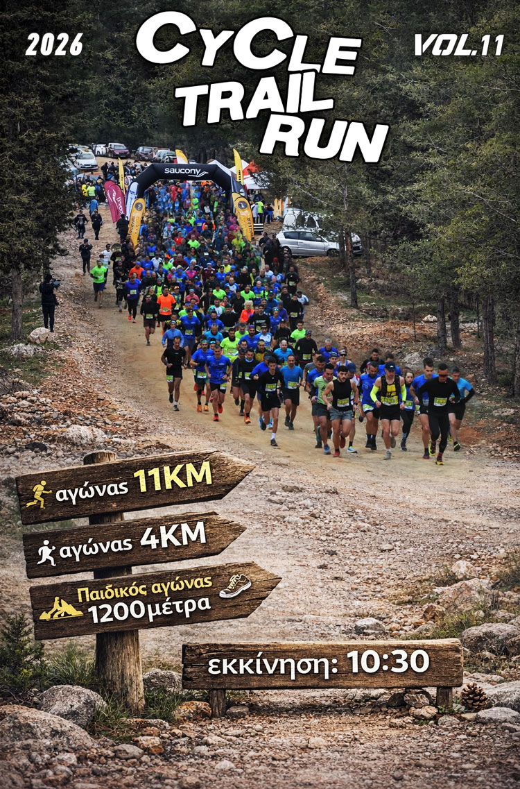Για το 11ο CYCLE Trail Run 11Κ και για το Trail 4Run 4Κ,καθώς και για τον παιδικό αγώνα δηλώνετε συμμετοχή στον παρακάτω σύνδεσμο : https://www.smfsports.gr/tag/cycle-trail-run-2026/